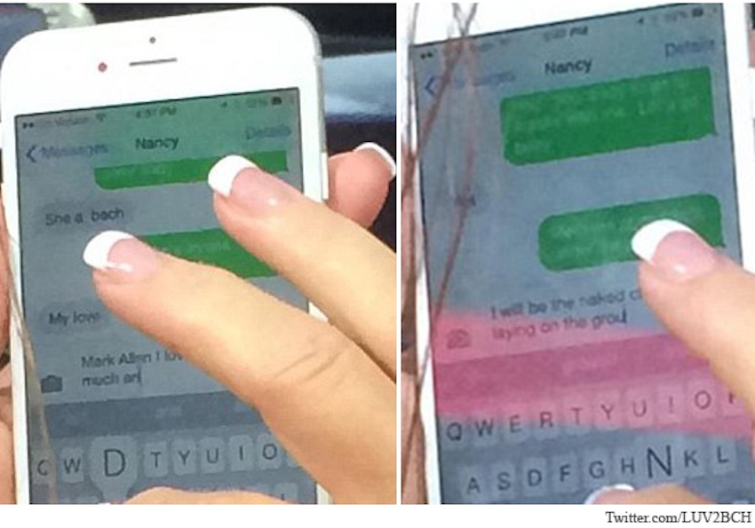 Delana and Brynn claim they saw the woman sending sexual and inappropriate text messages to a man saved as “Nancy” in her phone.